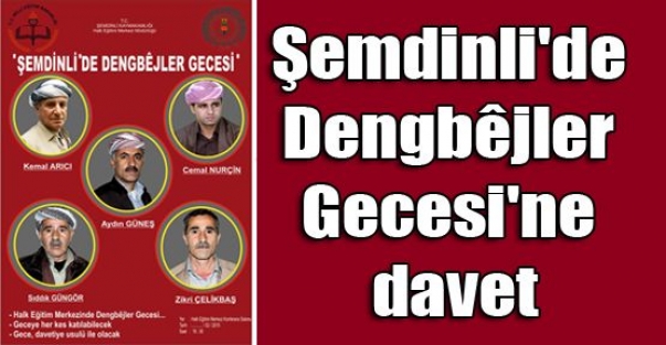 27 Şubat 2015 Cuma günü saat 18.30'da Şemdinli Halk Eğitim Merkezi Müdürlüğü'nde düzenlenecek 'Dengbêjler' gecesine halkın katılması çağrısında bulundu.