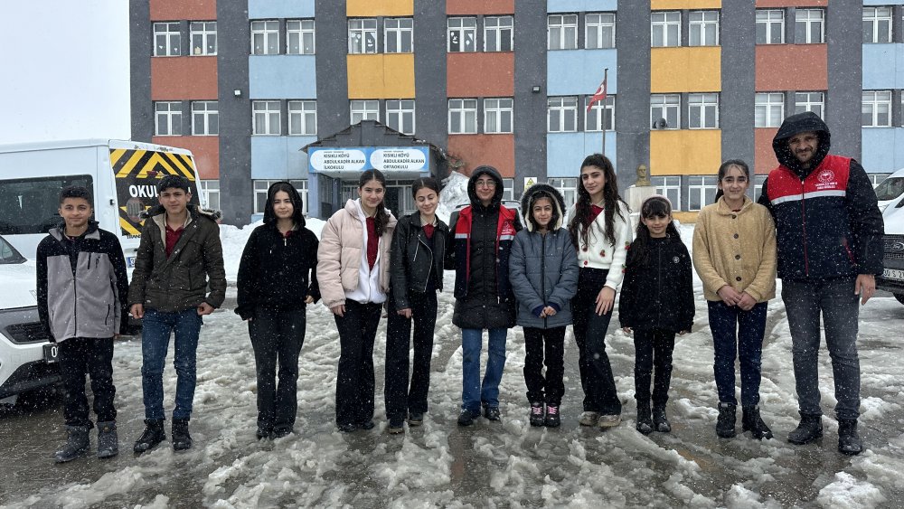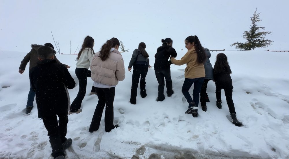 Okul salonundaki teorik eğitimin ardından, farkındalık çalışması köyün karlı arazisine taşındı.