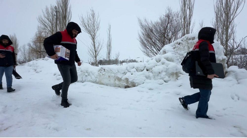 İlçe merkezine 20 kilometre uzaklıkta, 2 bin rakımlı Kısıklı (Dilezıx) köyüne ulaşmak için karla kaplı dik yamaçları yürüyerek aşan ekipler, adeta bir eğitim seferberliği başlattı.