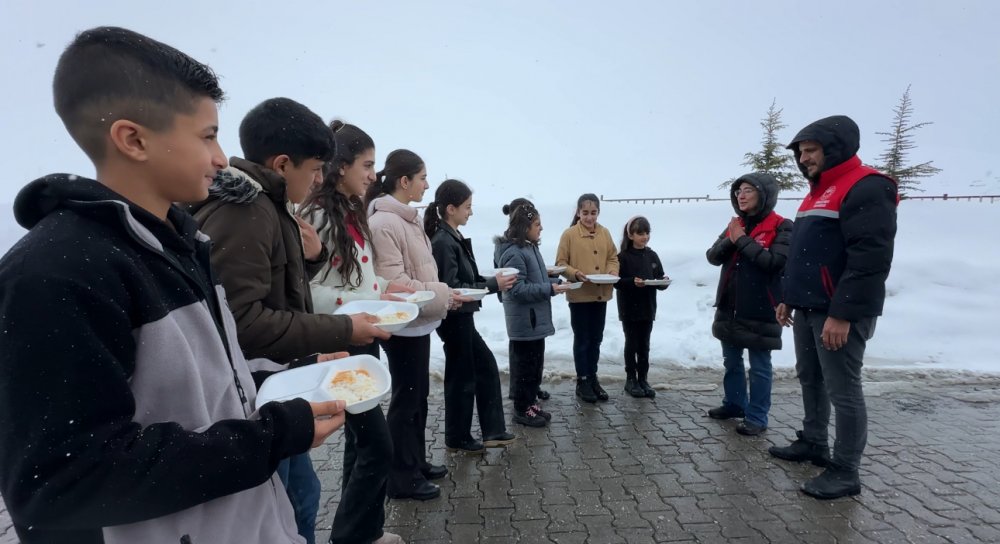 Okulda ve evlerde artan yemekler, öğrenciler ve ekipler tarafından toplanarak dondurucu soğukta yiyecek bulmakta zorlanan yaban hayat ve kuşlar için için doğaya bırakıldı.