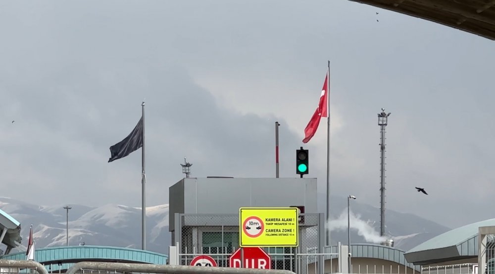 Bölgedeki gerilimin yanı sıra İran tarafında ilan edilen 40 günlük yas nedeniyle sınırın karşı tarafına asılan dev siyah bayraklar dikkati çekiyor.