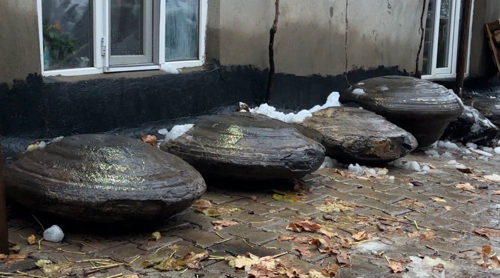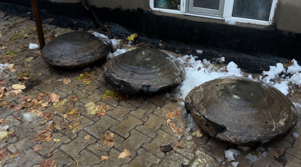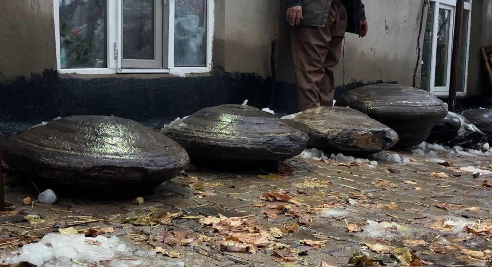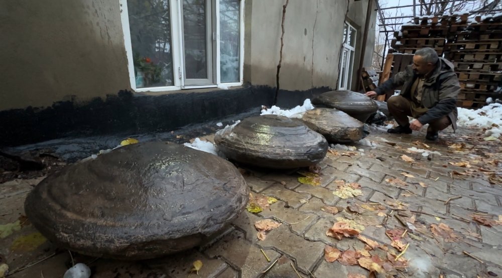 Şemdinli ilçesine bağlı Irak sınırındaki Aktütün (Bezele) bölgesinde, 3 yıl önce yol çalışması sırasında bulunan devasa yuvarlak taşlar, görenlerin ilgisini çekiyor. Bölgedeki Konur köyünün muhtarı Cafer Gezer, her biri 200 kilodan ağır olan bu gizemli taşları iş makineleriyle evinin önüne taşıyarak koruma altına aldı.