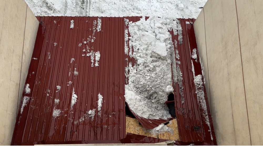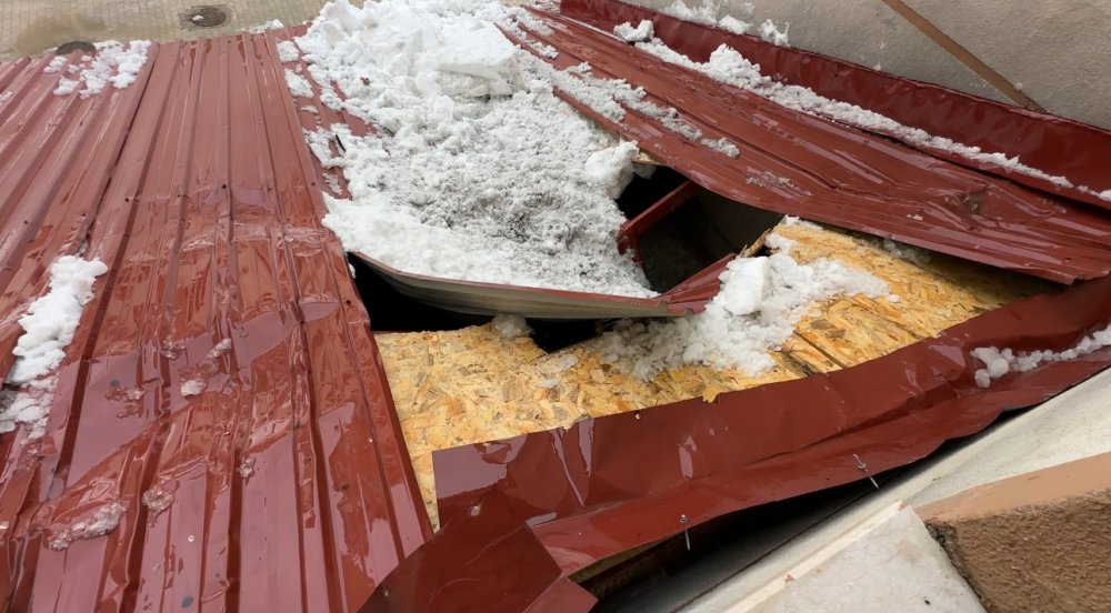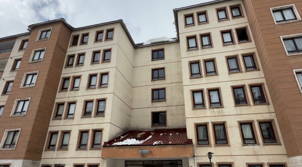 Esentepe Mahallesi'ndeki Pizok TOKİ evlerinde bulunan 6 katlı bir binanın çatısından düşen kar kütleleri, bina girişinde yer alan korumalık (markiz) çatıyı tamamen yıktı.