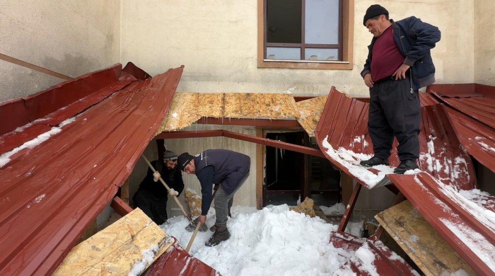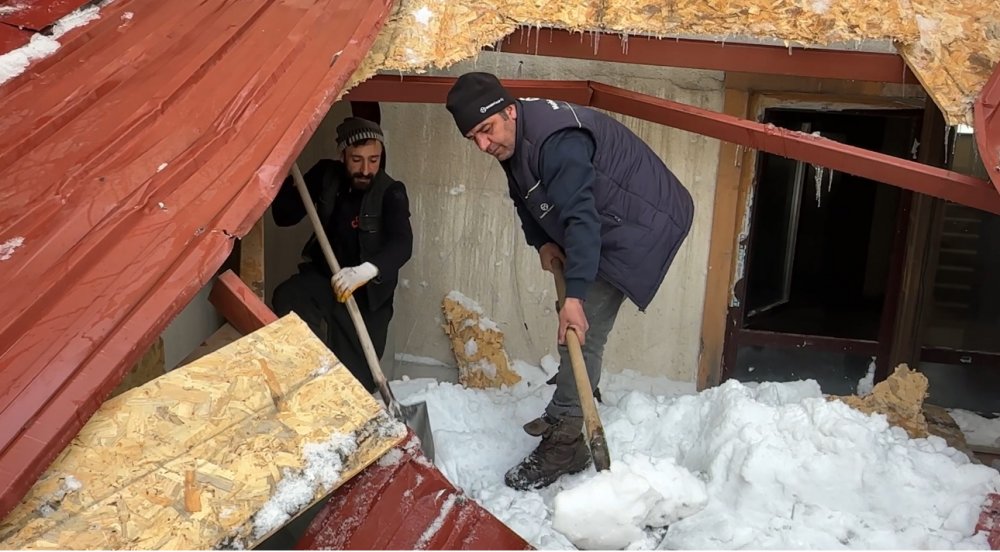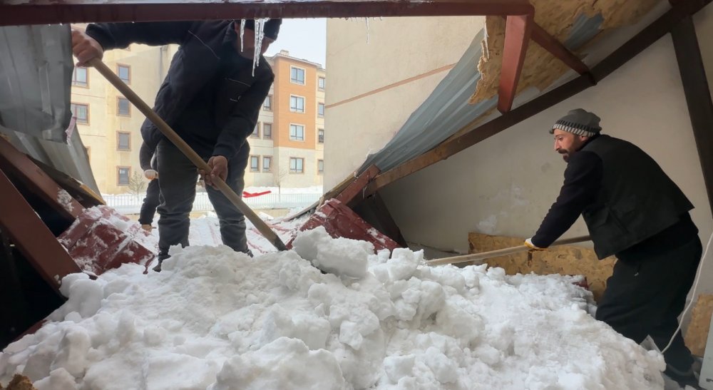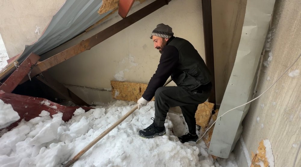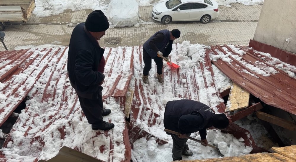 İlçe genelinde son 10 yılın en yoğun kar yağışının etkili olmasıyla birlikte, çatılarda biriken kar kütleleri tehlike oluşturmaya başladı.