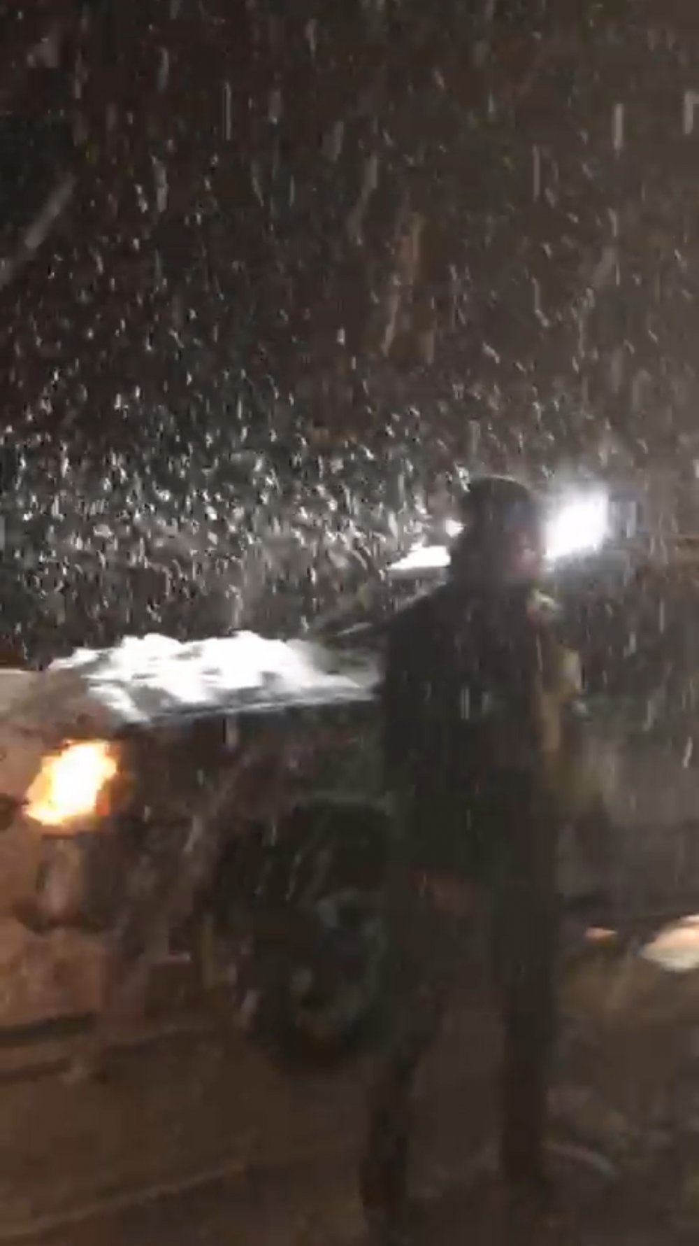 Yüksekova ilçesinde etkili olan yoğun kar yağışı ve tipi hayatı olumsuz etkilerken, kara yolunda mahsur kalan bir vatandaşın fırtınaya rağmen namaz kıldığı anlar cep telefonu kameralarına yansıdı.