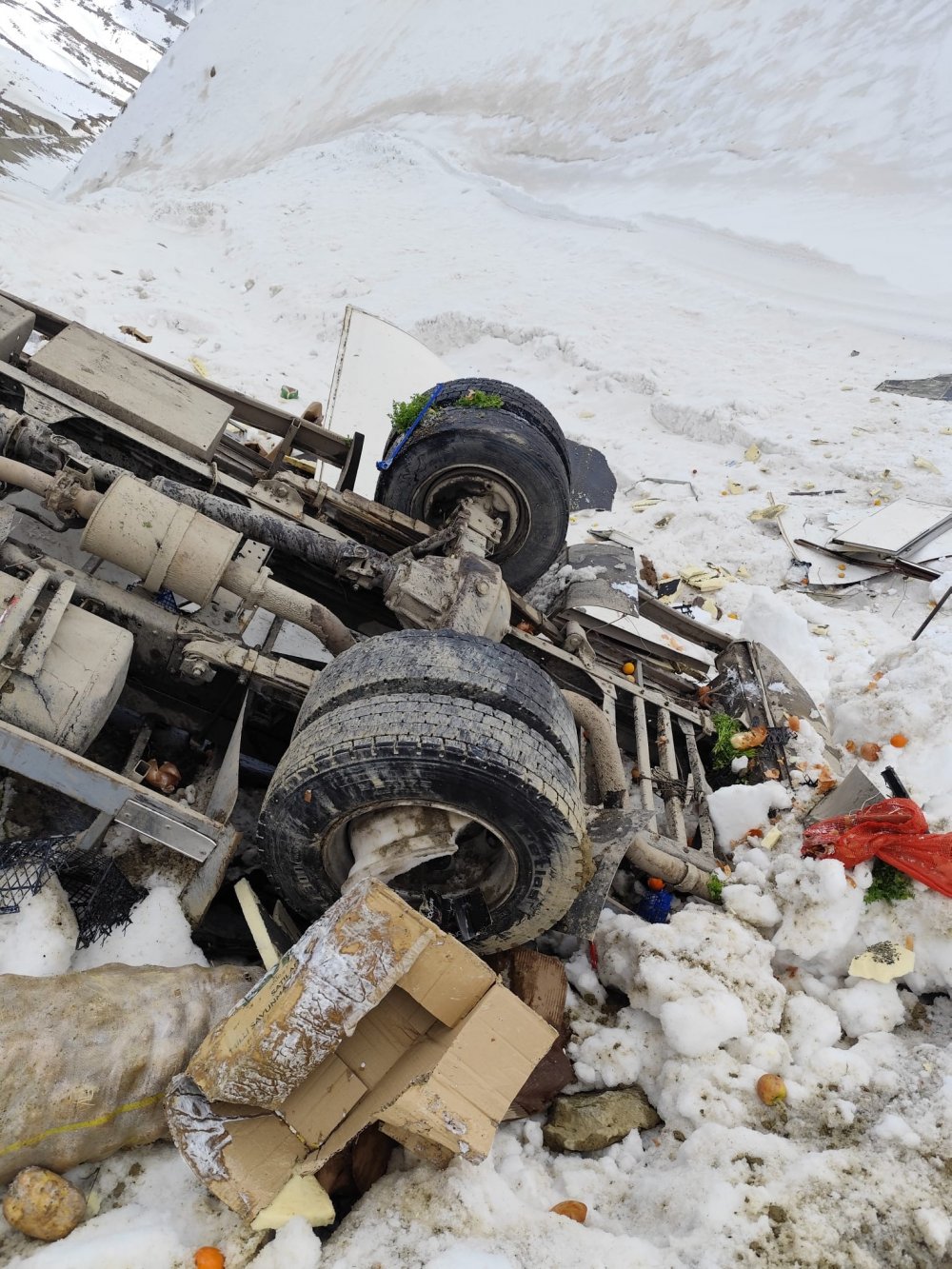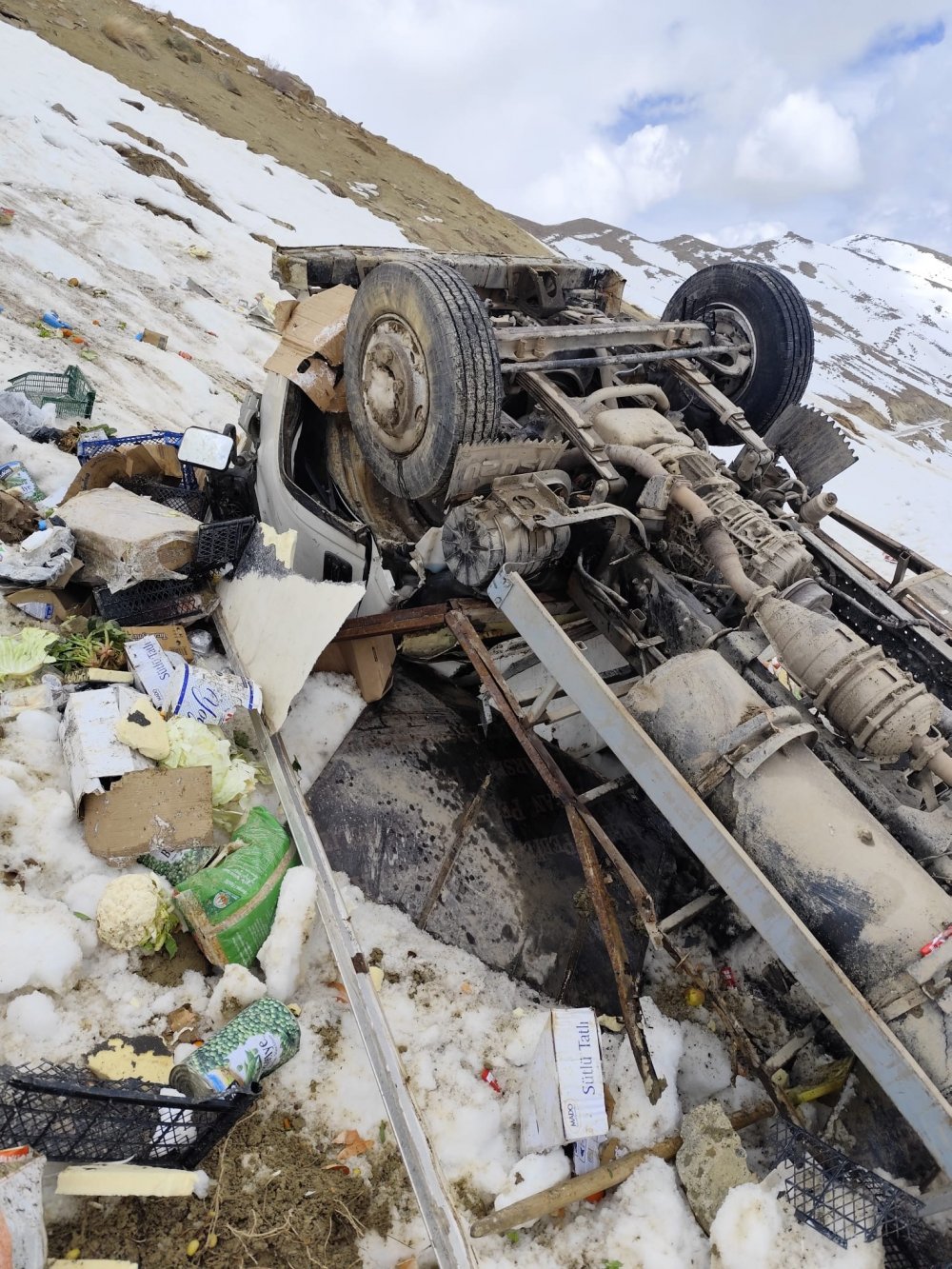 Yüksekova-Çobanpınar hattında seyir halindeki bir yük aracı, sürücüsünün henüz belirlenemeyen bir nedenle direksiyon hakimiyetini kaybetmesi sonucu şarampole yuvarlandı.