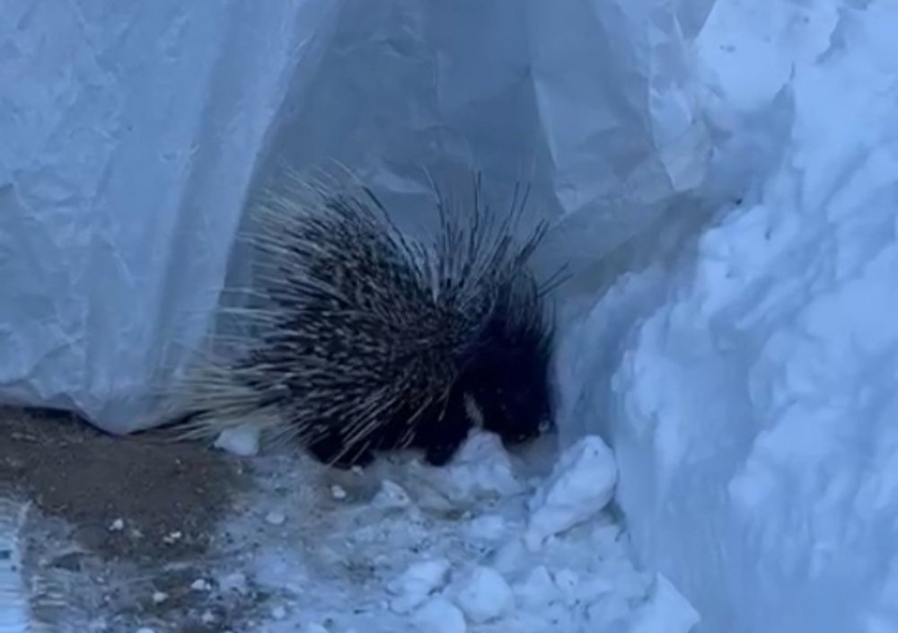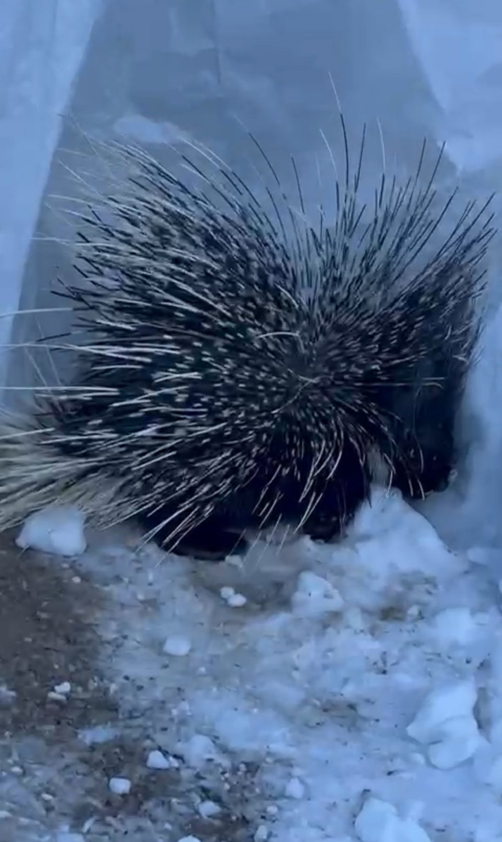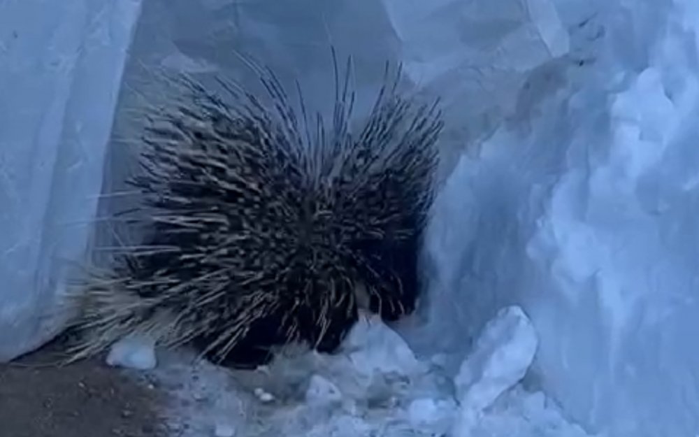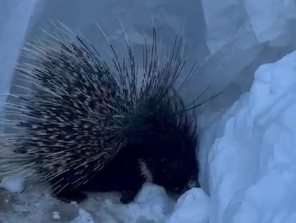 Yüksekova ilçesinde, nesli tükenme tehlikesi altında olduğu için koruma kategorisinde yer alan Hint oklu kirpisi bir vatandaş tarafından cep telefonu kamerasıyla kaydedildi.