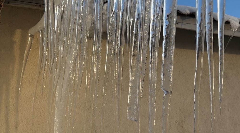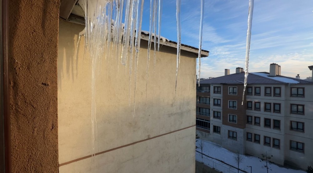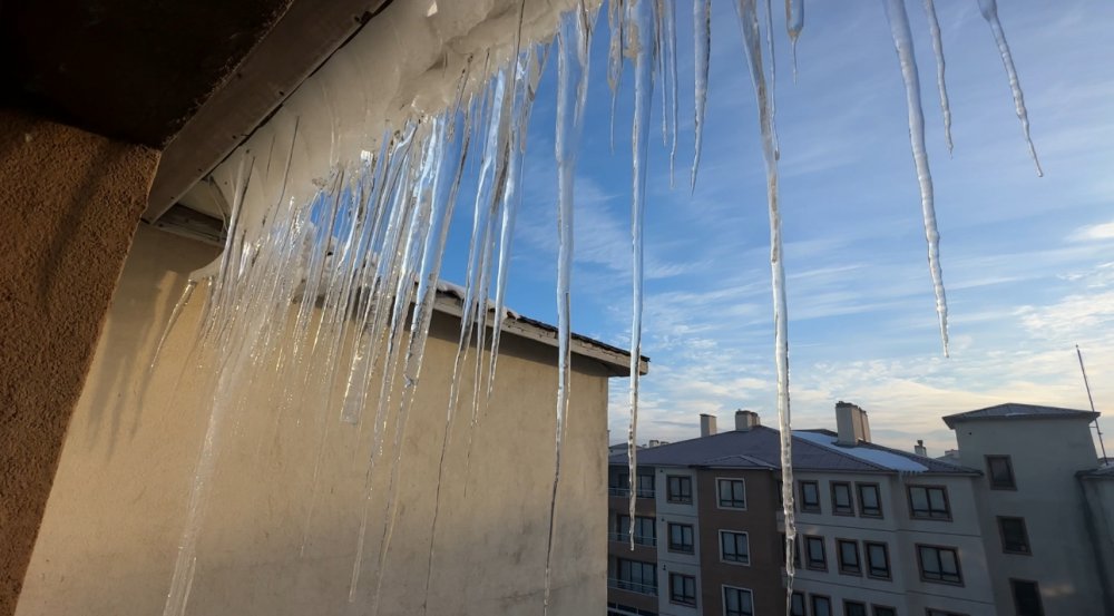 Dondurucu hava nedeniyle ev ve iş yerlerinin çatılarından sarkan buzların boyu yer yer 3 metreyi geçti.