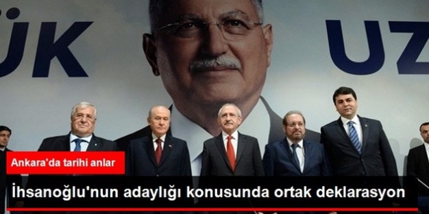 CHP Genel Başkanı Kemal Kılıçdaroğlu ve MHP Genel Başkanı Devlet Bahçeli ile Ekmeleddin İhsanoğlu'nun Cumhurbaşkanı adaylığını destekleyen siyasi partilerin genel başkanları ortak deklarasyon açıkladı.