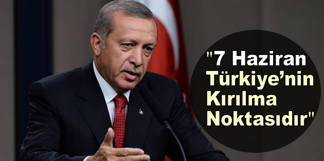 Cumhurbaşkanı Erdoğan “7 Haziran Türkiye’nin kırılma noktasıdır. 400’ü alan iktidar yeni Türkiye’nin temel taşlarını döşeyecektir. Bunu böyle görmemiz lazım” dedi.