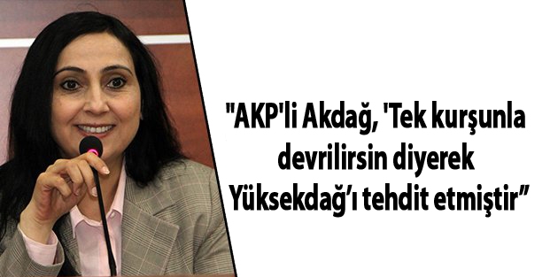 Kamuoyunun da bildiği üzere, ‘Tek kurşunla ineceksin’ tehdidi, AKP’nin yöneticileri, medyası, kurumları aracılığıyla, Eş Genel Başkanımız Figen Yüksekdağ’a yönelttiği ilk saldırı değildir. Daha önce de, Yüksekdağ, AKP’nin medya organlarınca “Susturun bu şirreti” manşetiyle hedef gösterilmişti. Recep Akdağ’ın dün yaptığı açıklamayı tetikçilere verilmiş bir mesaj ve organize bir suç işleme girişimi olarak algılıyor, başta Eş Genel Başkanımız ve HDP’li kadınlara yönelik gelişebilecek her türlü saldırıdan Recep Akdağ ve AKP’nin sorumlu olduğunu kamuoyuna duyuruyoruz.