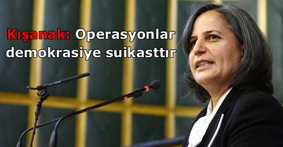 “AKP hükümeti günümüzün Yezidleri olma anlayışı ile adaleti katleden yaklaşımında hiçbir şey değiştirmiyor” diyen Kışanak, Van ve Iğdır’da “KCK” operasyonu adı altında çok sayıda siyasetçinin gözaltına alındığını söyledi. Kışanak, “Van’daki bütün demokratik kurumlar ve haber ajansları baskından nasibini aldılar. Bu nasıl bir zihniyettir ki kesintisiz bir şekilde Kürtlerin demokratik siyasette kendini var etme hakkını sonuna kadar gasp etmek için demokrasiye suikast yaparcasına ısrarlı bir şekilde bunu sürdürüyor. Bu operasyonlar demokrasiye suikasttır. Van Belediye Başkanı Bekir Kaya cezaevinde onun yerine vekaleten seçilen arkadaş da gözaltında. Iğdır belediye başkanı tutuklu, onun yerine bakan arkadaş şimdi gözaltında. Türkiye’de tek kadın il genel meclisi başkanı olan arkadaşımız gözaltına alındı” dedi.