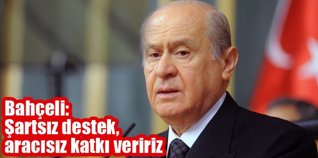 MHP Lideri Bahçeli, ”MHP devletin bekasına baş koymuştur. Destekse istenen şartsızdır. Katkıysa aracısızdır. Dua ise özlenen sınırsızdır. Yeter ki terör örgütünden kurtulalım” dedi.