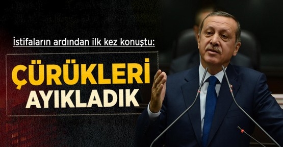 Yolsuzluk ve rüşvet operasyonunun sadece AK Parti hükümetine değil, Türk milletine yapılmış bir komplo olduğunu tekrarlayan ve operasyona dair sert eleştirilerde bulunan Başbakan, 3 bakanın istifasına ise hiç değinmedi. Ancak üstü kapalı olarak "Biz aramızdaki çürükleri temizleriz ya da temizlemek için gerekenleri yaparız." diyerek üstü kapalı göndermede bulundu.