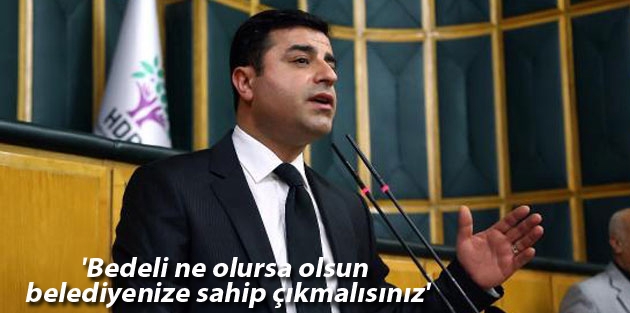 “Hepsi yalan, iftira. Türkiye’nin batısına dönüp ‘Bunlar teröre yardım ediyor’ dedikten sonra her türlü hukuksuzluğu yapabileceklerini sanıyorlar. O belediyeleri seçmiş olan insanlar, ne pahasına olursa olsun, belediyelerinize sahip çıkmalısınız. Mesela belediye değil, iradenizdir. Ne olursa olsun geri adım atmayın. Sanayi Odası Başkanları atanmış bir memurla çalışacak mısınız? Merak ediyorum, soruyorum.
