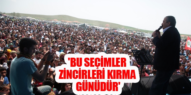 Konuşmasında, özgürlük savaşçılarına, ezilen haklara, 18 Mayıs'ta Diyarbakır Cezaevi'nde işkencede katledilen İbrahim Kaypakkaya'ya selam gönderen Diyarbakır Büyükşehir Belediyesi Eş Başkanı Gültan Kışanak'ın "7 Haziran'da sandıklar açıldığında Öcalan'a oylarımızla, zaferimizle selam göndereceğiz" sözlerine alanda bulunan binler "Bijî Serok Apo" sloganıyla cevap verdi. İç Anadolu'da yaşayan Kürtlerin yıllardır asimilasyona, inkara, tekçiliğe karşı direndiğini belirten Kışanak, "Bu topraklara sürgün geldiniz. Türk halkı ile barış içinde yaşamak için kendinizden taviz verdiniz. Ama kültürünüzden, dilinizden, yaşamınızdan taviz vermediniz. Bu 300 yıllık direnişinizin meyvesini 7 Haziran'da alacağız" ifadelerini kullandı.