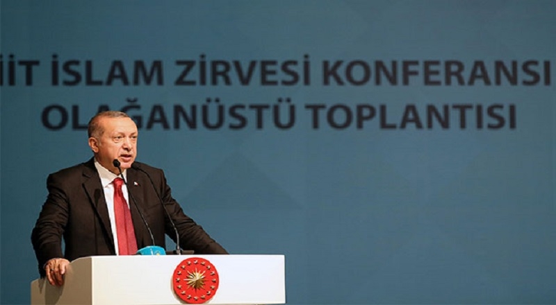 İİT İslam Zirvesi Konferansı'nın toplanma gerekçesine ilişkin Erdoğan, "İslam coğrafyasının siz değerli temsilcilerini aramızda görmek Filistinli kardeşlerimiz başta olmak üzere tüm Kudüs sevdalılarına güç ve cesaret veriyor. Bugün İstanbul'da ilk kıblemiz, göz bebeğimiz Kudüs'ün tarihi ve hukuki statüsüne bir kez daha yapılan hoyratça saldırı nedeniyle bir araya geldik. Bugün İsrailli haydutlar tarafından katledilen Filistinliler için harekete geçmek, tüm dünyaya insanlığın halen ölmediğini göstermek demektir. Barışa sahip çıkmak demektir. Çünkü Kudüs, bütün Müslümanların onuru, izzeti, harimi ismeti, ortak emeği, mirasıdır. Aynı zamanda 3 semavi dininin de mukaddes beldesidir. Burada sadece Kudüs'ü işgal teşebbüsüne karşı tepkimizi ortaya koymuyoruz. Aynı zamanda 3 semavi dininin barış içinde bir arada yaşama idealine de sahip çıkıyoruz. Bölgemizi kan ve gözyaşına boğmak isteyenlere dur diyoruz" diye konuştu.