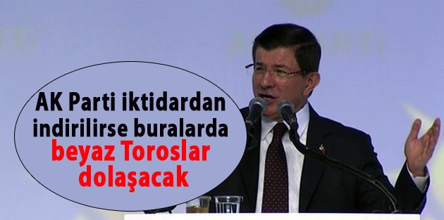 Davutoğlu şöyle konuştu: "Sizleri eline silah alan sokak çapulcularına kesinlikle teslim etmeyeceğiz. Canınıza malınıza namusunuza kastedenlere karşı sizi kimsesiz bırakmayacağız. Bırakın makamımıza, canımıza dahi mal olsa bu kutlu yoldan vazgeçmek bizim için söz konusu değildir. Zaten şerh odakları bu kararlığımızdan çekiniyor. AK Parti iktidardan indirilirse buralarda terör çeteleri dolaşacak, beyaz Toroslar dolaşacak. Biz buraları faili meçhullere bırakmayacağız. Hiç merak etmeyin seksenli doksanlı yıllara dönmeyeceğiz. Huzur ve demokrasi operasyonu başlamak zorunda olduğunda, PKK bize saldırdığında verdiğim talimat açıktı. Bu terör belasıyla mücadele edeceksin. Ama dedim ki hiçbir vatandaşımızın canına malına zarar vermeyeceksiniz. Biz ayırdık ama onlar ayırmıyorlar polisi de sivili de öldürüyorlar.” EVRENSEL