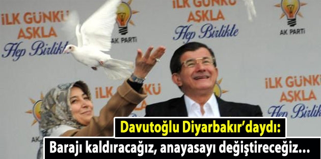 Kürt sorununda çözümüne yönelik yaptıklarını anlatan Davutoğlu, “Nasıl o vesatyeçi sisteme karşı mücadele verdiysek, kardeşi kardeşe kırdırmaya çalışan bu teröristlere ders vermeye hazır mısınz Diyarbekir? Bir miyiz? Yürek yüreğe miyiz? Sandıklara yüreğimizi koyacak mıyız? Dirliğimizi kardeşlimizi sandıklara oy diye atacak mıyız. Ak Parti iktidarına tekrar tek başına iş başına diyecek misiniz? Ne diyoruz ilk günkü aşkla haydi bismillah. Aşkımız bitmez bizim Diyarbekire. Biz tabuları yıkmak, söylenmeyeni söylemek birileri hoşlanmasa da sizin Serok Ahmet demenizi çok seviyorum. Kürt, Türkmen hepsi bizim içindir. Ser sera, ser çava (Başım gözüm üstüne). Kaosu bir meslek olarak görenler, büyümeden rahatsız olanlar var. Demokratik özgürlüklerden rahatsız olanlar var. Darbeden medet umuyorlar. Dağa gençleri kaçırıyorlar Diyarbekir anneleri çocukları dağa kaçırldığı için Ankara ya yürüyen Diyarbekir anneleri hepsi azizdir” dedi.