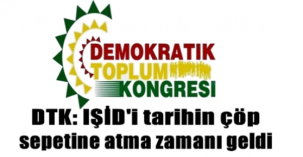 Demokratik Toplum Kongresi (DTK), Irak Şam İslam Devleti (IŞİD) çetelerinin 3 Ağustos'taki Şengal işgaline ilişkin yaptığı açıklamada "IŞİD'i tarihin çöp sepetine atmanın zamanı gelmiştir" dedi. DTK, bunun yolunun da Kürt halkının ulusal birliği ve ortak savunma gücünü oluşturmaktan geçtiğini kaydetti.
