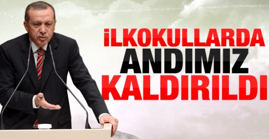 'İlkokullardaki andımız uygulamasını kaldırıyoruz. Geçen yıl ortaokullarda bu uygulamayı kaldırmıştık. Şimdi de ilkokullarda kaldırıyoruz.'