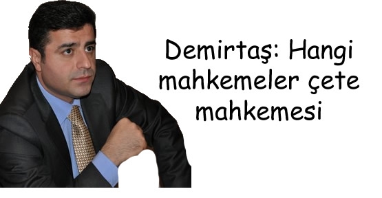 Demirtaş, "Bu özel yetkili mahkemelerin artık hiçbir meşruiyetinin, hiçbir güvenirliliğinin kalmadığını Başbakan'ın ağzından duymaya başladık. Başbakan Türkiye'de bazı yargıçların savcıların paralel devlete çalıştıklarını, çete olduklarını kendi ağzıyla ifade etti" dedi.