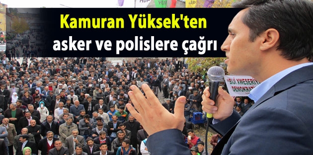 Polis ve askerlere seslenen Yüksek, "AKP ve Erdoğan'ın militanlığını yapmayın, onlar için ölüme gitmeyin. 6 ay ya da bir sene sonra bu ülkeyi kim yönetiyorsa yönetsin biz onlarla masaya oturup bu sorunu çözeceğiz. Siz kendi katlinize, kendiniz adım atarak gitmiş olursunuz. Onlar için ölmeyin. AKP tek başına iktidar olacak diye kendinizi öldürmeyin. Onlar devletin imkanıyla halkımız üzerinde baskı ve zulüm yürütüyorlar. Bu halk onların ne ciplerinden ne de beyaz Toroslarından korkar. Geçmişte yüzlerce katliama maruz kalan bu halk, burada dimdik ayakta ama katliamları yapanlar tarihin çöp sepetine gitti. Bu zalimlerde gidecekler" diye konuştu.