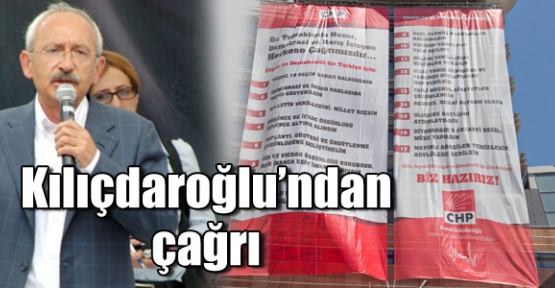 Kılıçdaroğlu’nun özellikle gençlere seslenerek, 'Gezi Parkı eylemlerinden önce açıkladığımız Özgürlük ve Demokrasi Bildirgemizi inceleyiniz' dediği çağrı CHP Genel Merkezi'ne asıldı.17 maddeden oluşan Kılıçdaroğlu imzalı pankartın il binalarına da asılacağı öğrenildi. Demokrasi, hukuk ve toplumsal barış için CHP’nin önerileriyle önceliklerini içeren 'Demokrasi ve Özgürlük Bildirgesi şöyle: