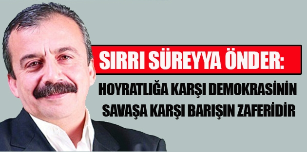 HDP Ankara milletvekili adayı Sırrı Süreyya Önder, kesinleşmemiş seçim sonuçlarına ilişkin yaptığı kısa açıklamada, “Esas açıklamayı eşbaşkanlarımız yapacak. Şu an itibariyle 80 milletvekili gibi bir sayı ile meclise girmenin eşiğinde bulunuyoruz. Bu sonuçlar, hoyratlığa karşı demokrasinin, zulme karşı özgürlüğün, şımarıklığa karşı tevazuunun, savaşa karşı barışın zaferidir. Bütün Türkiye’ye hayırlı, uğurlu olsun” dedi.