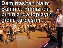 Kayapınar Belediyesi tarafından yapılacak ve toplam 102 bin metrekare alana sahip üç yeni parkın temel atma törenine katılan BDP Eş Genel Başkanı Selahattin Demirtaş, Demokratik Özerkliğin kendileri açısından vazgeçilmez olduğunu belirterek, "Yoksa İdris Naim Şahin'in temsilcisinin burada ne işi var. Seçime girdik kaybettiniz, yenildiniz. O zaman halka saygı duyun seçilmişine saygı duyun onları tutup içeri atacağınıza Valinizi de pılınız da pırtınızı da toplayın gidin kardeşim" dedi.