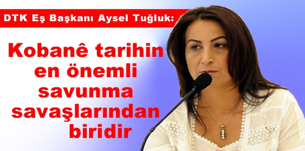 Kürt halkının da bu kirli plana karşı seferberlik ruhuyla yönünü Rojava’ya çevirdiğini söyleyen Aysel Tuğluk, Kobanê’de tarihin en önemli savunma savaşlarından birinin yaşandığının altını çizdi.