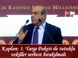 Kaplan, 3. Yargı Paketinde adli kontrolde üst sınırın kaldırılmasıyla tutuklu vekiller konusunun yeniden gündeme geldiğini ve Meclis Başkanı Cemil Çiçek ile Başbakan Yardımcısı Bekir Bozdağ'ın tutuklu vekiller için de adli kontrol uygulanabileceğine ilişkin açıklamalar yaptığını hatırlattı. 3. Yargı Paketi"ndeki düzenlemelerin, evrensel hukuk kuralarına göre derhal ve resen mahkemeler tarafından uygulanması gerektiğini vurgulayan Kaplan, "Bizim tutuklu milletvekillerimiz başvurularını yapmışlardır. Umarız ki, geciktirmeden, çünkü özgürlükler söz konusu olduğu zaman bütün işler durur, mahkemeler bunun gereğini yapar ve yeni bir tartışma ortamına neden olmazlar" dedi.