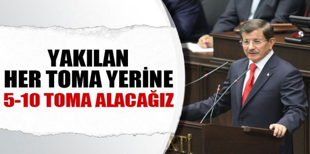 Başbakan Davutoğlu, Kobani eylemlerine ilişkin olarak, “Ne tedbir alınması gerekiyorsa alınacak. Yakılan her TOMA’nın yerine gerekirse beş TOMA on TOMA alınacak” dedi.