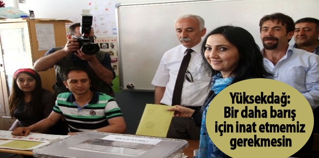 1 Kasım seçimlerinden, seçmen iradesinin yok sayılamayacağı kadar güçlü bir irade çıkmasını, demokrasi çıkmasını istediğini vurgulayan Yüksekdağ, şöyle devam etti: "Van'da insanlar çatışma ve baskının altında oyunu ve iradesini savundu. Bugün de barış ve demokrasiye olan inancını en doğru şekilde yansıtacağını düşünüyorum. Diliyorum ki bir daha barış için inat etmemiz gerekmesin, demokrasi için inat etmemiz gerekmesin. 7 Haziran seçimleri yok sayılmasaydı halkımız barışın kalıcılaşmasının sağlanması için açılmış bir yoldan ilerleyecekti. Bugün 1 Kasım'a kadar olan yol çok daha zorlu bir yol ve yolculuk haline getirildi. 1 Kasım'dan sonra yolumuz açık olsun. Acının, gözyaşının, savaşın ve zulmün, insanların zorla tercihinin değiştirildiği bir Türkiye olmasın. İnsanlar bunun için seçimlere girdi ve umarım kazanacağız." DİHA