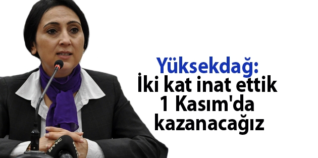 "1 Kasım'da Türkiye'nin özgür iradesi kazanacak" diyen Yüksekdağ, bu kez iki kat daha fazla inat ettiklerini ve oylarını yükselteceklerini söyledi. HDP'ye oy veren ve verecek olanlara seslenen Yüksekdağ, "Yüreğinizin ışığını karartmalarına izin vermeyin. Savaş ve zulüm karşısında insanca direnmenin, barış içinde yaşamanın sözü ve iradesi olun. Karanlıklar mutlaka biter" dedi.