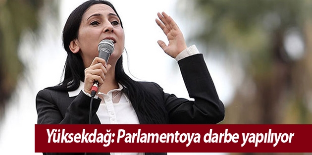 Yüksekdağ, “Parlamentoya darbe yapıyorlar. Düşüncelerimizden dolayı Meclis’ten atmakla tehdit ediyorlar. Siz fikirlerinize, kimliğinize darbe yapıldığında şapkanızı alıp kaçar gidersiniz ama bizden bunu beklemeyiniz,” diye konuştu.