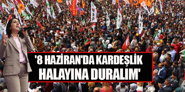 Yüksekdağ, Suriye'ye yönelik hükümetin savaş hazırlığında olduğunu ifade ederek, "O silahların gönderildiği IŞİD çeteleri Kobanê'de yenildi. Bugün halen silahla besledikleri IŞİD çeteleri Rojava'dan sürülüyor. Bu savaş siyasetinin altında kalıyorlar. Emin olun ki 7 Haziran'da bu sandıkların altında kalacaklar. Halkın özgür iradesinin altında kalacaklar. Savaşa karşı barış, kardeşlik ve çözüm siyasetini, ölüme karşı yaşam ve birleşik mücadelesini 7 Haziran günü de savunacağız" dedi.