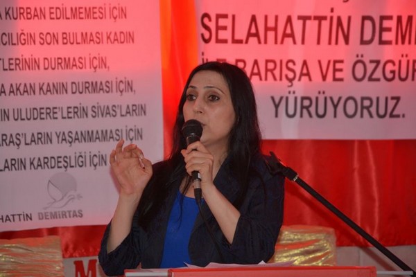 “Sayın Abdullah Öcalan’ın bugüne gelmemizde büyük payı var. Sayın Öcalan, bir birlik projesine inanarak, önünü açarak bir bölgenin değil bütün bölgelerin lideri olduğunu göstermiştir. Bu, bütün halkların barış isteğine büyük bir katkıdır. Bu katkı, barış yolunun açılması, bir siyasi mevzi ile birleştirilmeliydi. İşte HDP bu projenin siyasi merkezi ve kaldıracıdır. HDP tüm bölge halklarının eşitlik ve demokrasi üzerine kurulu geleceğini inşa etmenin adıdır” şeklinde konuştu.