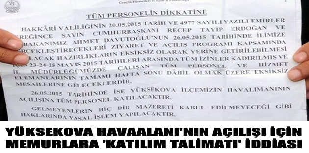 Yüksekova Havaalanı'nın açılışı için memurlara 'katılım talimatı' iddiası