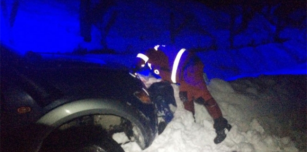 Beş kişilik UMKE timi gece 00.15 sıralarında yola yola çıktı. Arazi araçlarıyla yaklaşık bir buçuk saat yol giden UMKE ekibi yolda kara saplandı. Araçlarını vinç yardımıyla 2 metrelik kardan kurtaran UMKE ekibi, köye ulaşmak için yola devam etti.