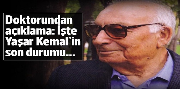 Yaşar Kemal'in sağlık durumuyla ilgili İstanbul Üniversitesi İstanbul Tıp Fakültesi Hastanesi Başhekimi Prof. Dr. Mehmet Akif Karan açıklama yaptı. Karan, "Dünden beri olan gelişmeler stabil durumda. Durum kontrol altında. Olumsuzluğa gidiş söz konusu değil.