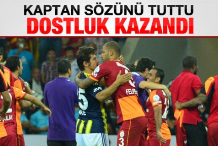 Emre'nin yanı sıra kupa seramonisinde iki takım futbolcularının birbirleriyle konuşmaları ve maçın ardından sarılmaları dikkatlerden kaçmadı.
