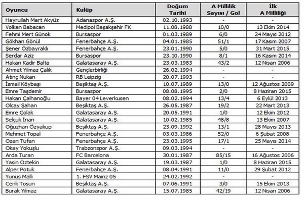 A MİLLİ TAKIM'IN ADAY KADROSU