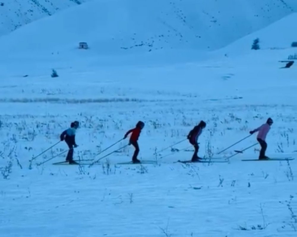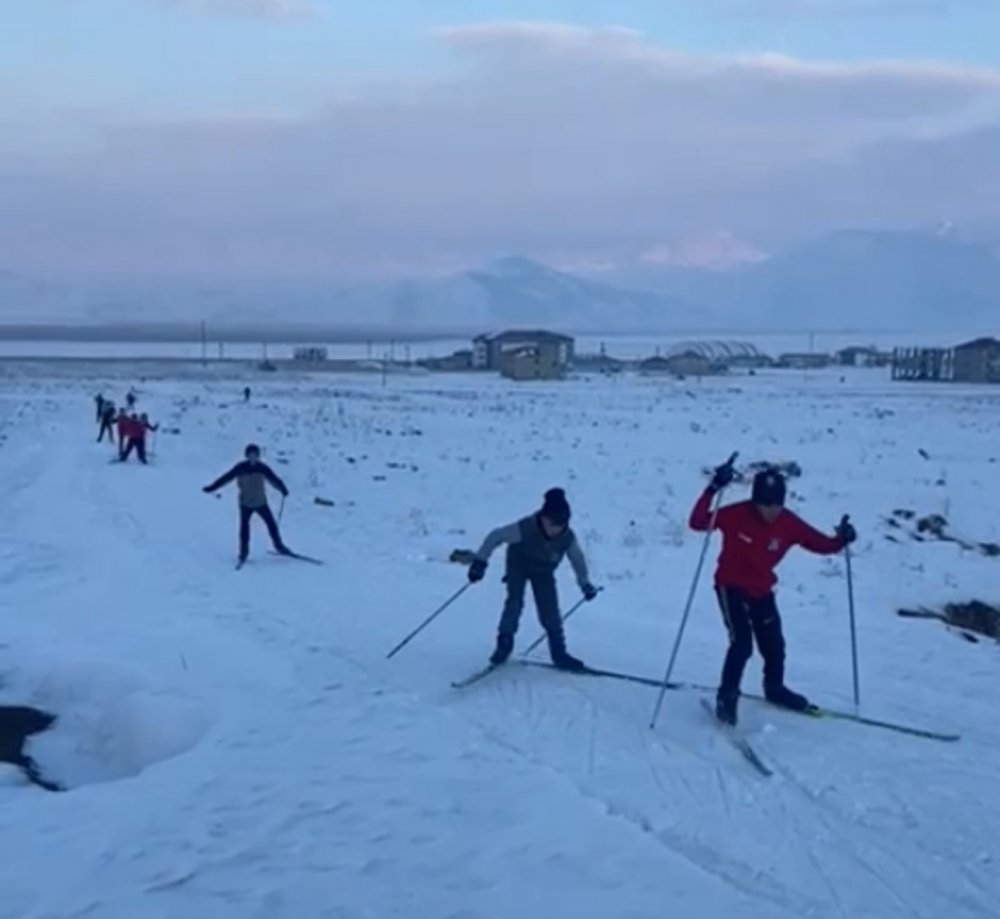Yüksekova Gençlik ve Spor Müdürlüğü bünyesindeki 60 sporcu, ilçenin Kamışlı köyünde bulunan kayak merkezinin pistinde zorlu hava şartlarına rağmen çalışmalarını sürdürüyorlar.