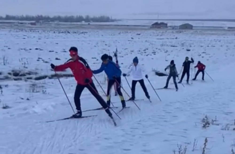 Erzurum'da yapılacak kayaklı koşu yarışması öncesi tüm Türkiye'de olduğu gibi Yüksekovalı sporcular da yoğun mesai harcıyor.