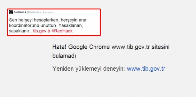 Önce twitter, ardından da youtube'a erişimin engellenmesine karar veren Telekominikasyon İletişim Başkanlığı'na (TİB) bir tepki de Redhack isimli hacker grubundan geldi. Redhack, twitter hesabından, "Sen herşeyi hesaplarken, herşeyin ana koordinatörünü unuttun. Yasaklanan, yasaklanır.." tweet'iyle TİB'i hacklediğini duyurdu.