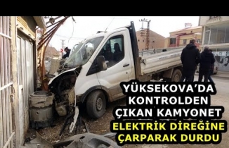 Yüksekova’da Kontrolden Çıkan Kamyonet Elektrik Direğine Çarparak Durdu