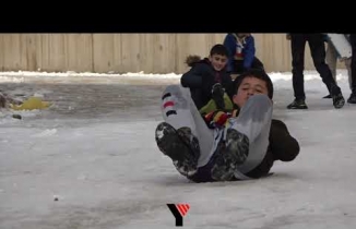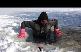 Yüksekova’da buz tutan derede kazma ve kürekli ’Eskimo usulü’ balık avı