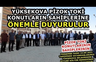 Yüksekova Pizok TOKİ konutların Sahiplerine Önemle Duyurulur