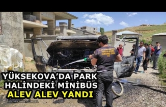 Yüksekova’da Park Halindeki Minibüs Alev Alev Yandı